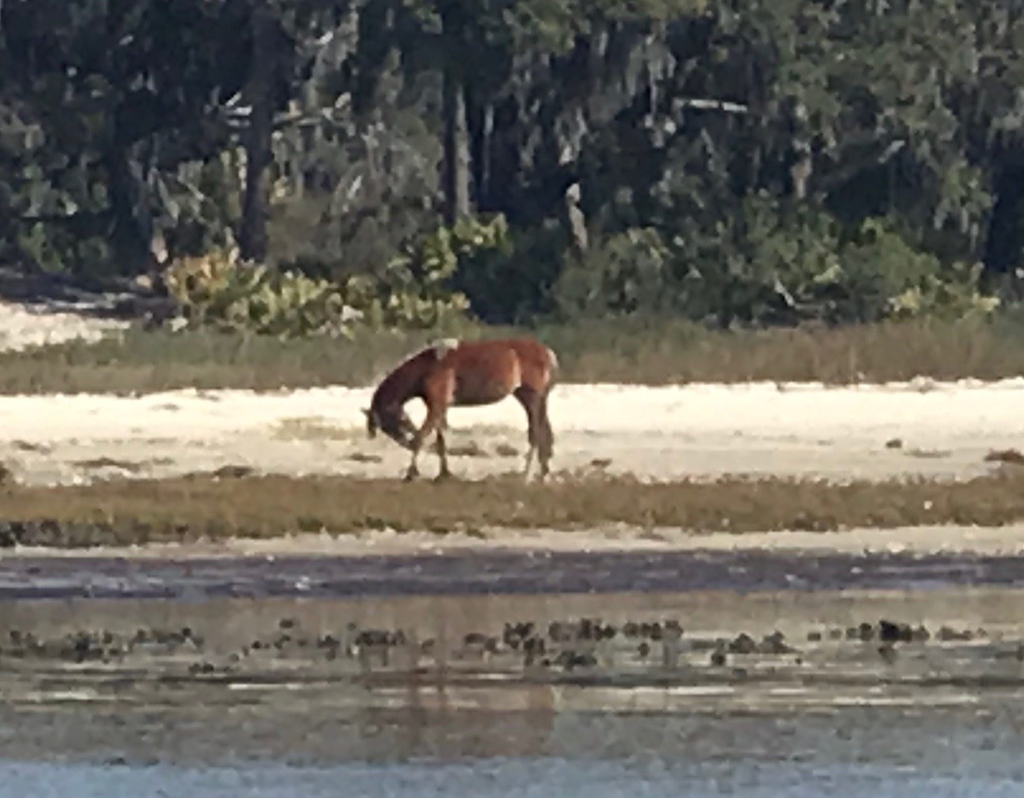 We took a river tour which took us near Cumberland Island. During the turn of a the previous century, the Carnegie family wanted to winter in Florida on Jekyll, about 20 miles north of Cumberland Island. A group of old money people had a 58 bedroom home at which they would spend many winters, 1900 -1920s. The Carnegie’s were upset when they were rebuffed and purchased so they Cumberland Island 20 miles south of Jekyll Island. They built a 59 bedroom home. Ms. Carnegie also purchased , in todays dollars, millions of dollars worth of race horses and turned them loose on the island.