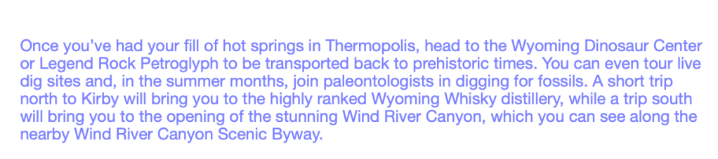 What to do in Thermolpolis ,Wyoming pop 3400.
