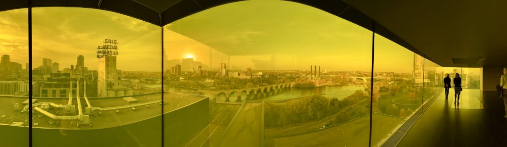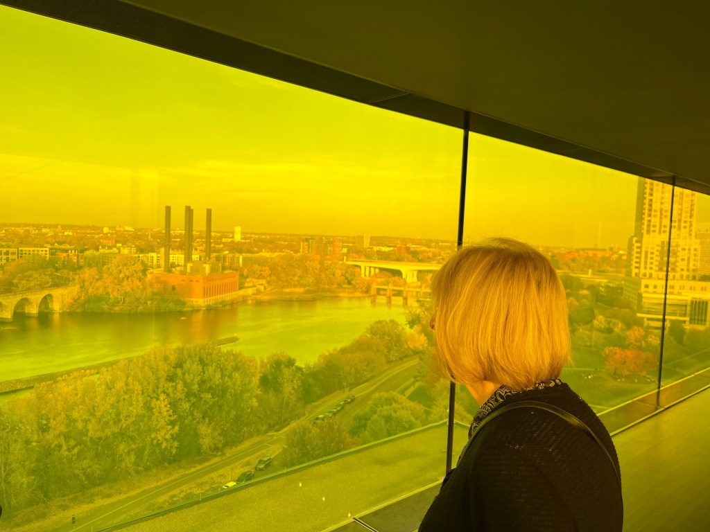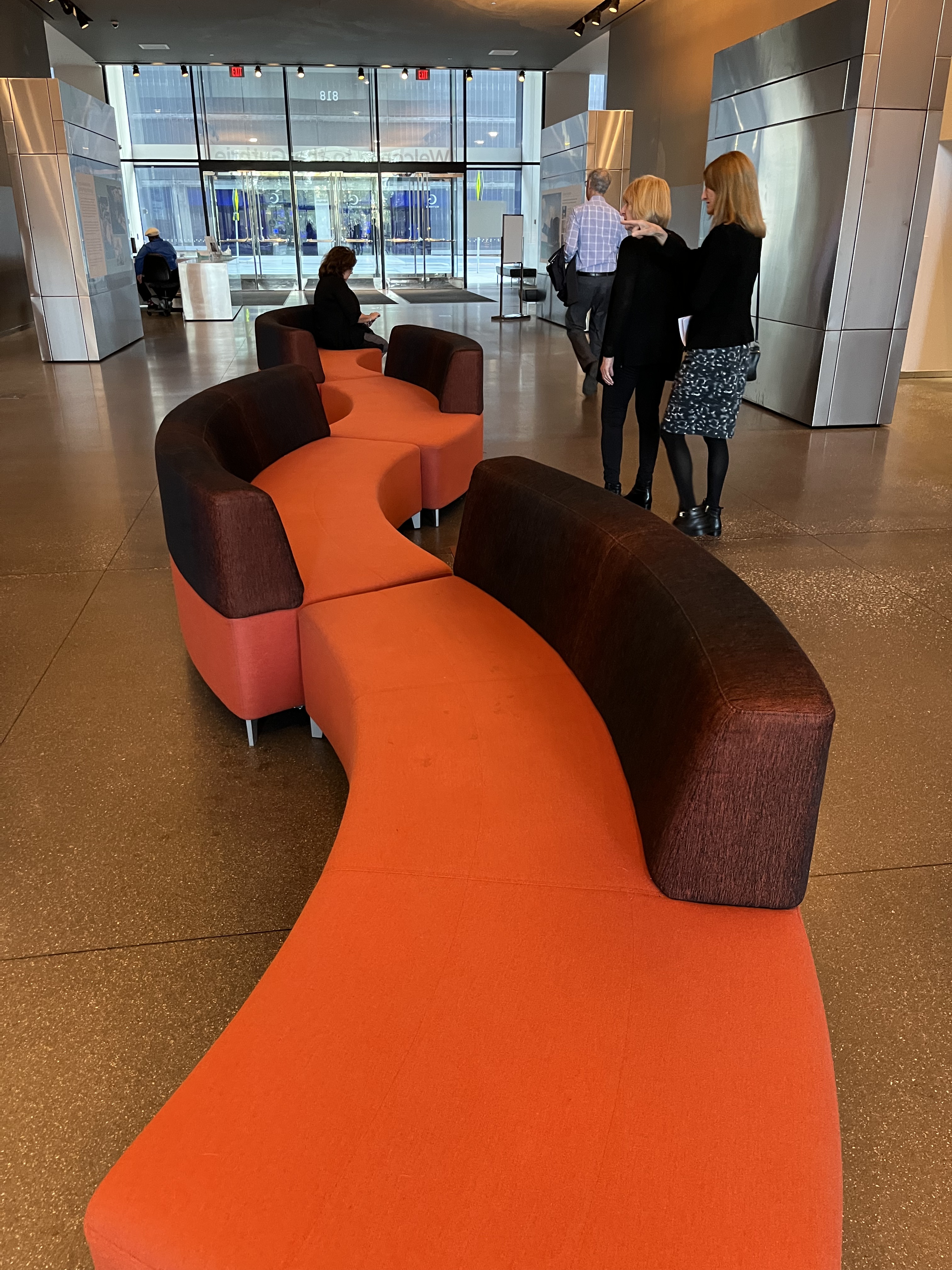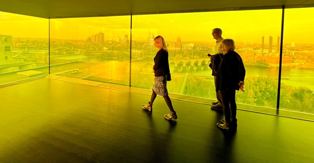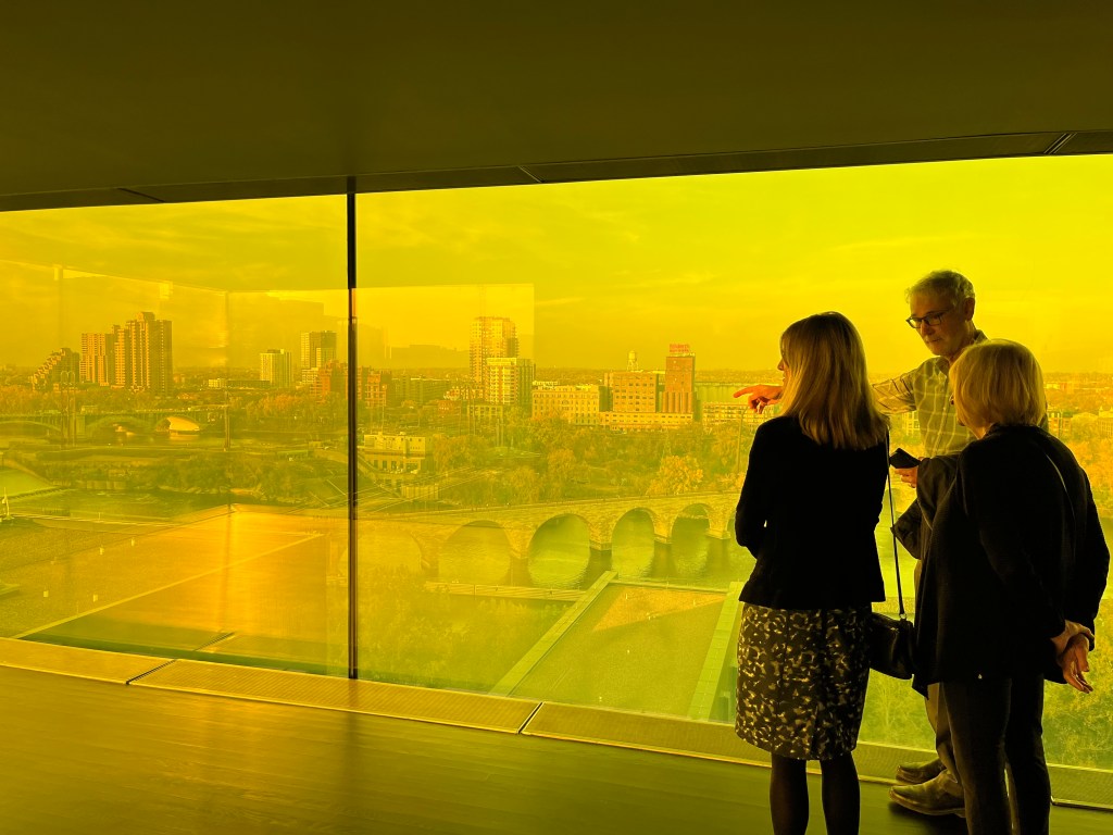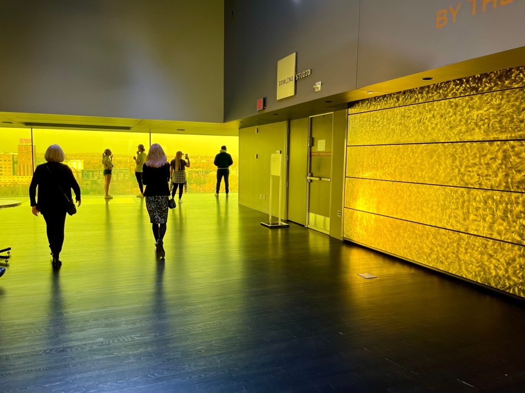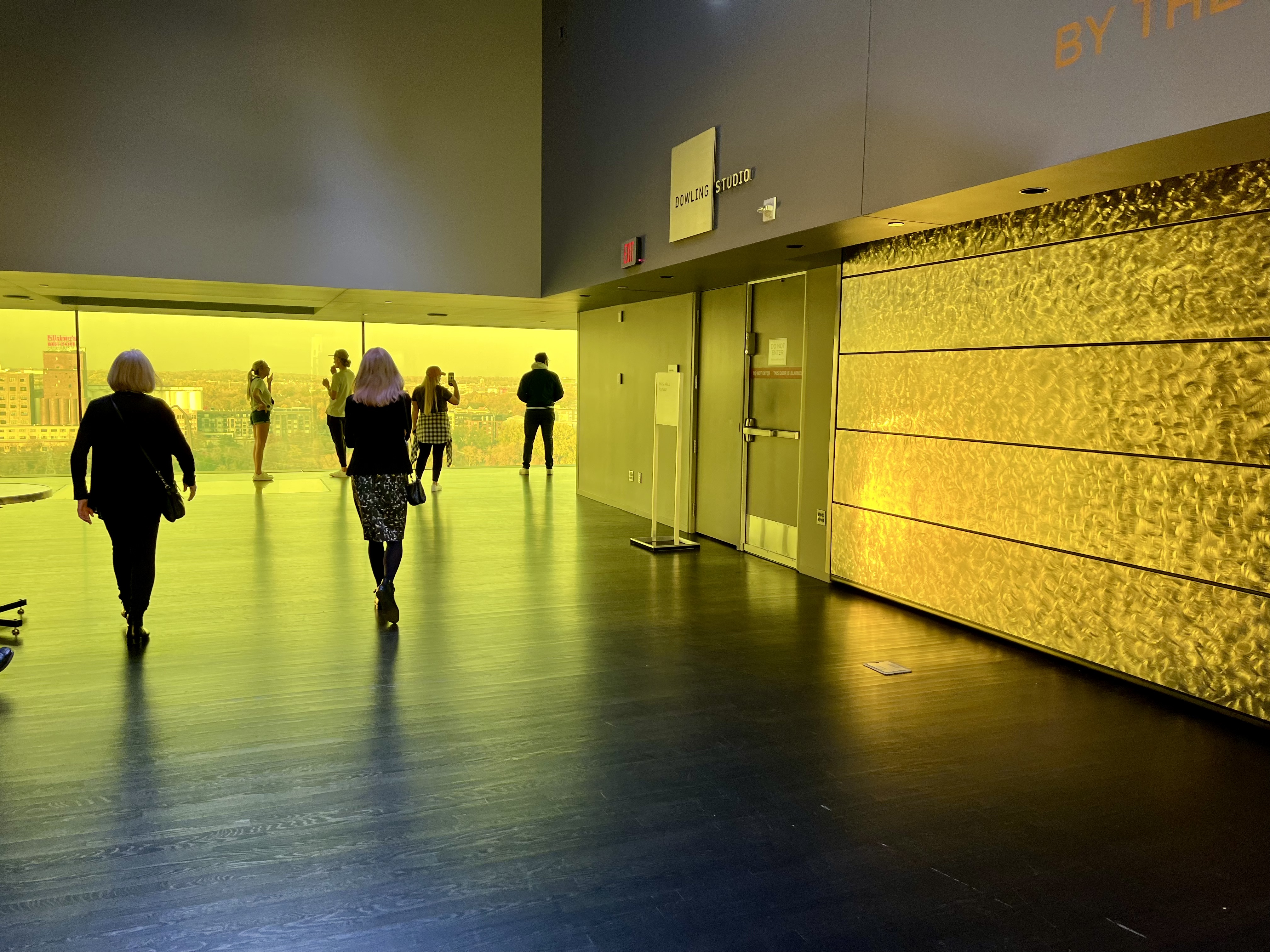 Below: Top Floor of the Guthrie is completely enclosed in amber glass,wow.