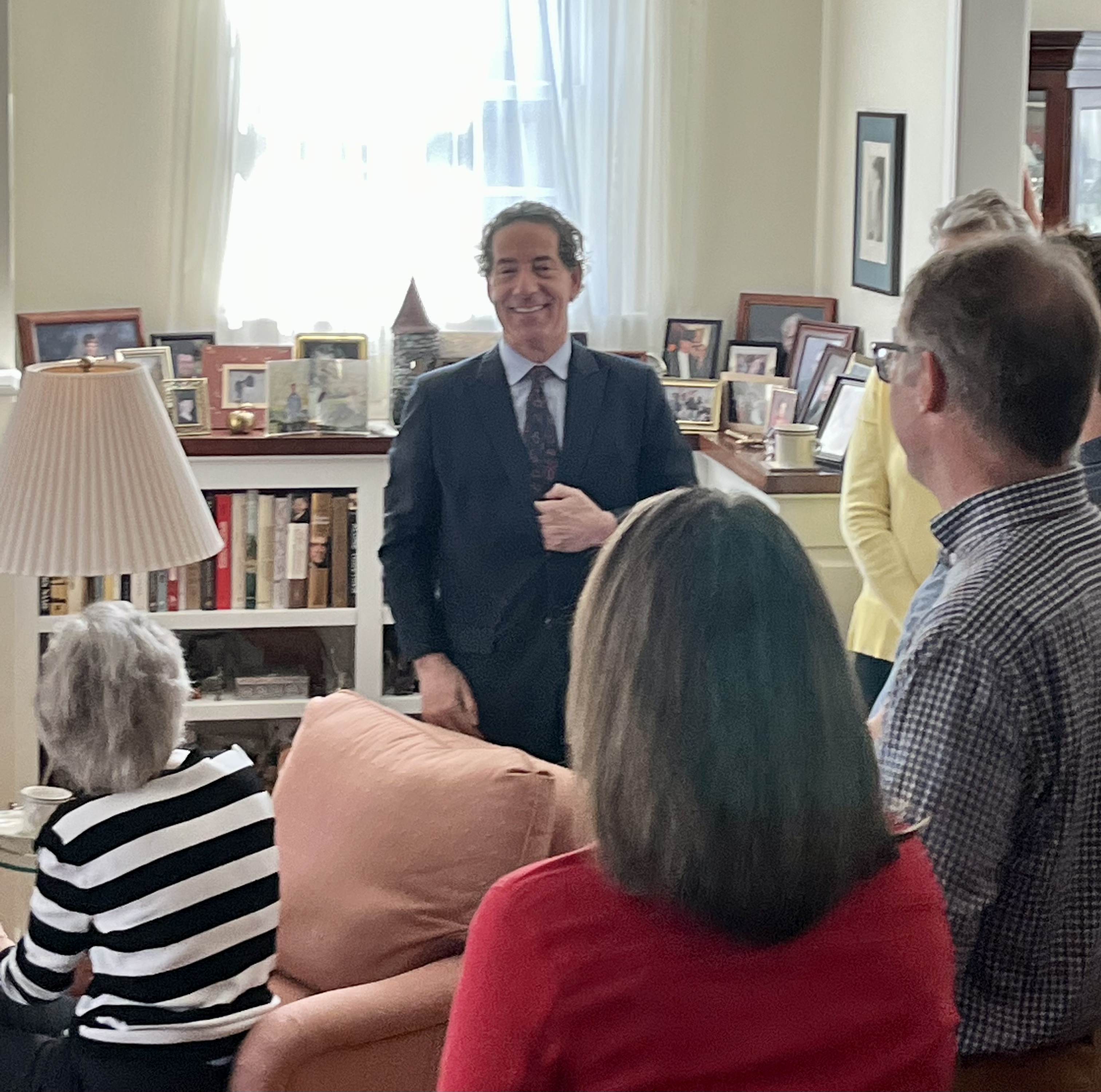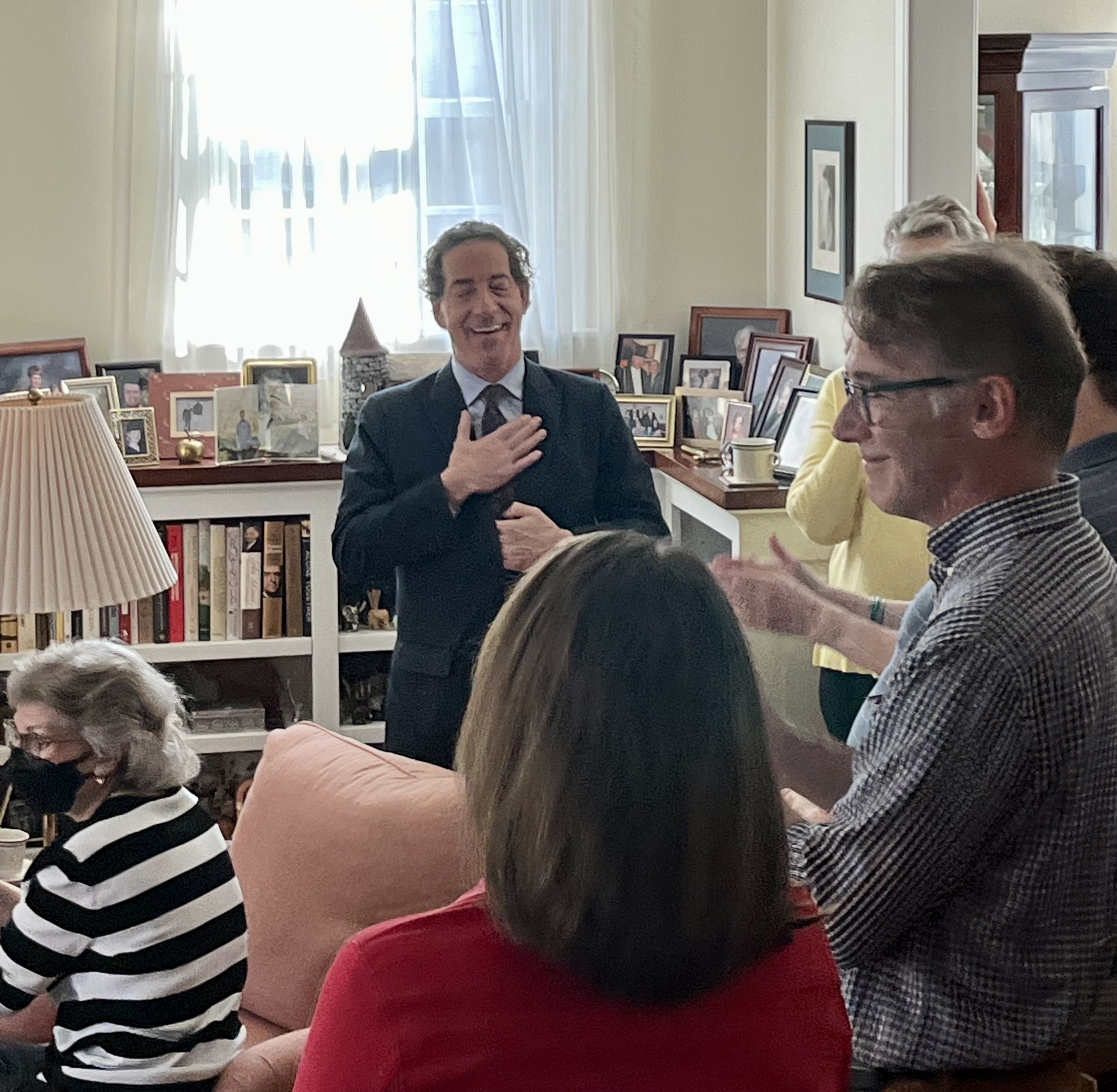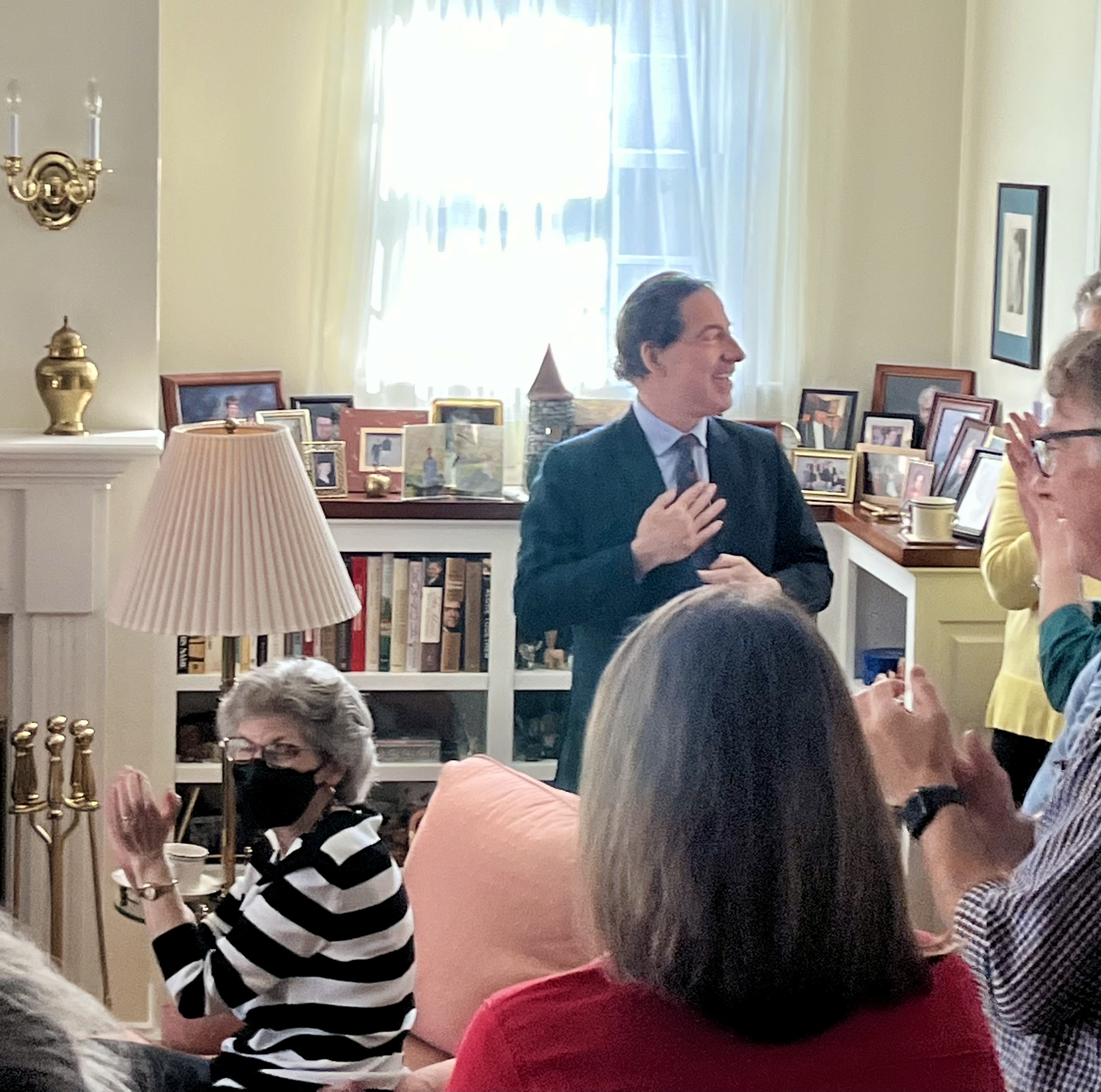 Below: Visiting someone’s home for a political fundraiser for Angie Craig.