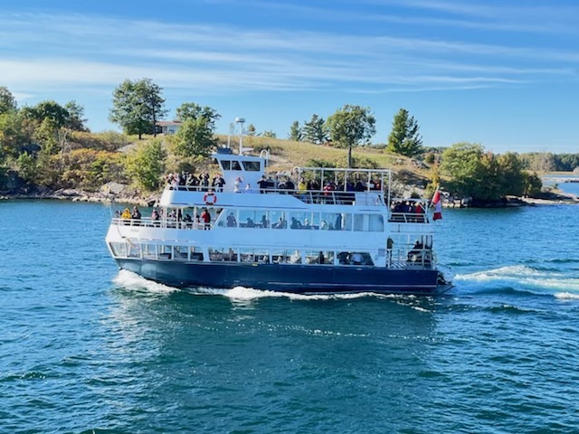 All Aboard for Tour of the Thousand Islands Region below: Captain misses dock several times, but claims all female crew will see us through the cruise better than a male crew. Her crew was very good.