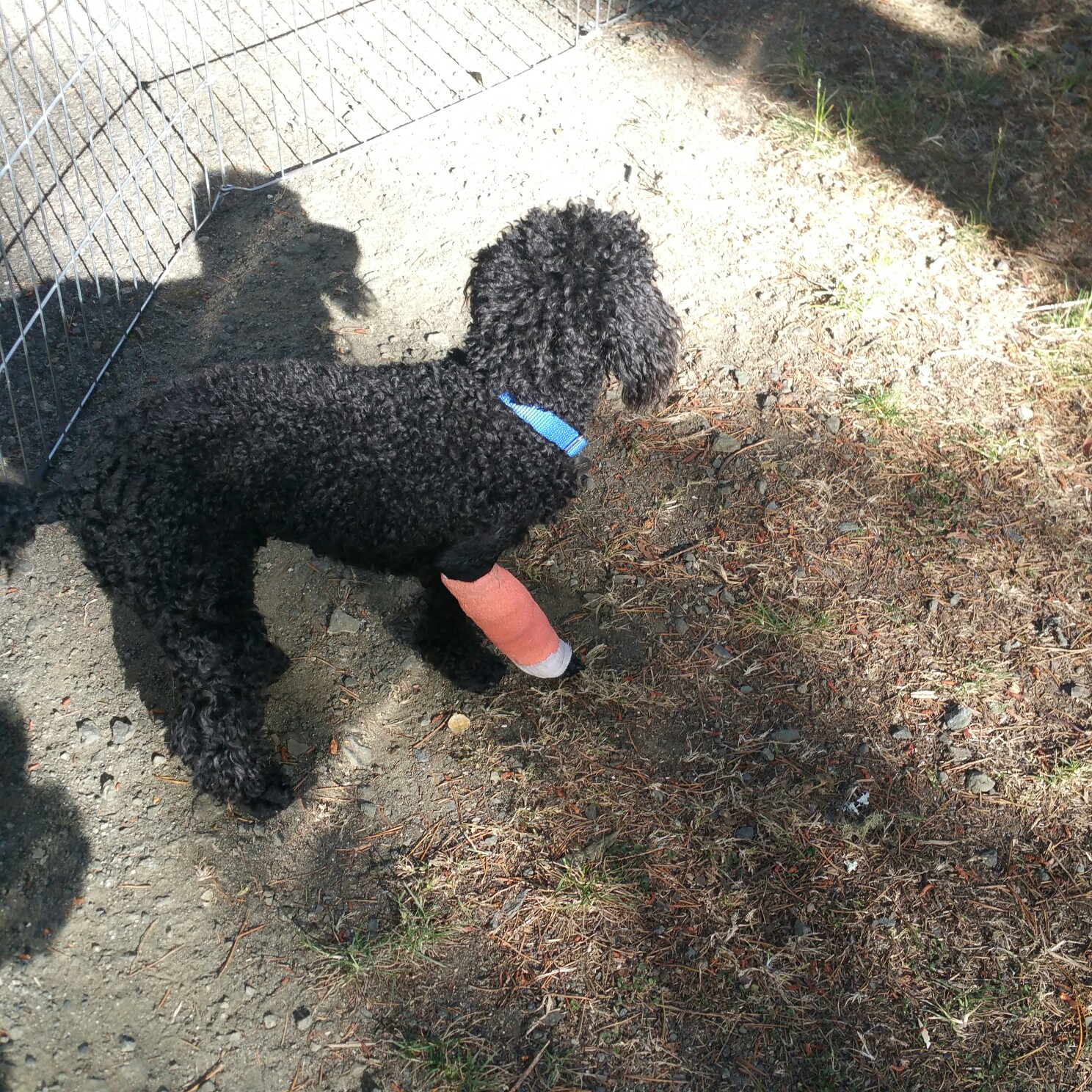 Little Cooper fell out of the truck. He now has a plate in his leg.  We’re meeting many vets as we travel. Two weeks in splints,  two just wrapped,  x-ray at 4 weeks. So sad.